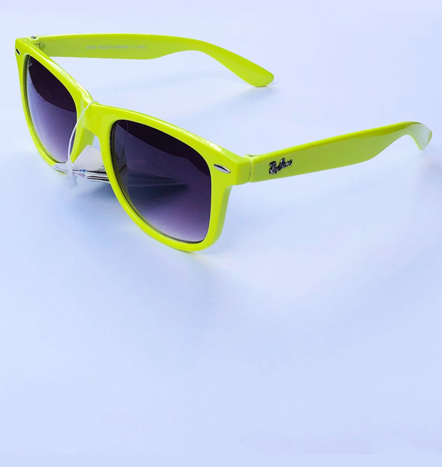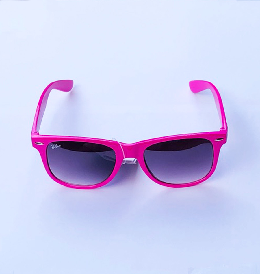 Gọng kính vuông chất liệu Plastic màu vàng và hồng đeo khi đi biển.