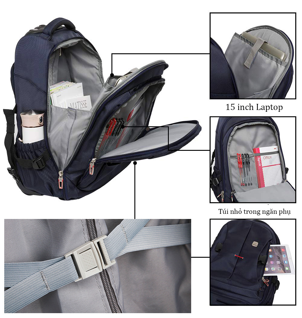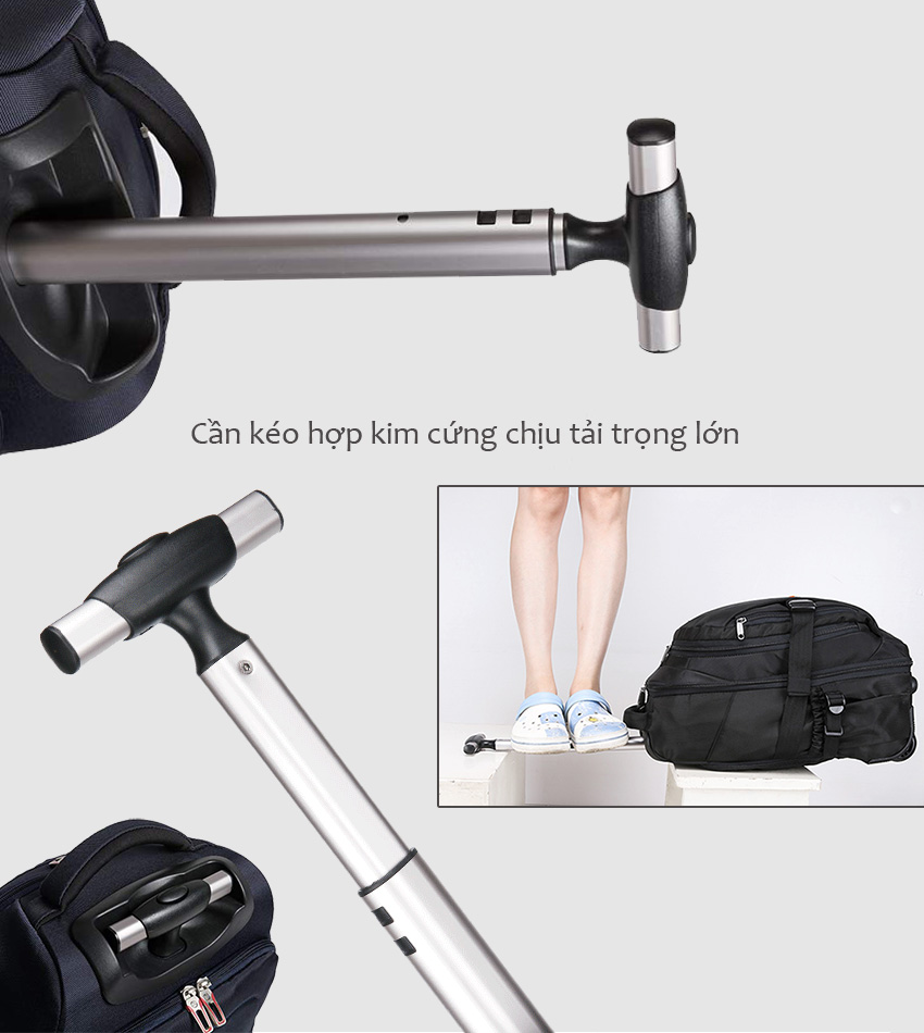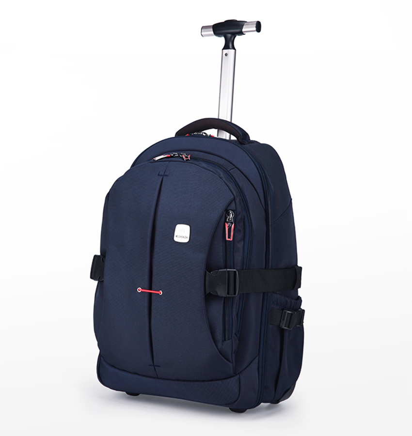 Balo kéo nam vải dầy bánh xe tốt bền bỉ Size 19 xanh navy TM842 sử dụng 2 bánh xe và một cần kéo thiết kế âm vào chắc chắn. Ngăn để laptop 15.6'' có thể sử dụng đi làm kết hợp đi du lịch. Balo có dây đeo vai và ốp lưng lót múp êm, thông hơi thoáng khí. Dây phụ khi đeo vòng ra trước cố định ở ngực và eo. Hai bánh xe âm có vòng bi tuổi thọ cao, chất liệu vải cao cấp dùng bền, không bị đổ lông.