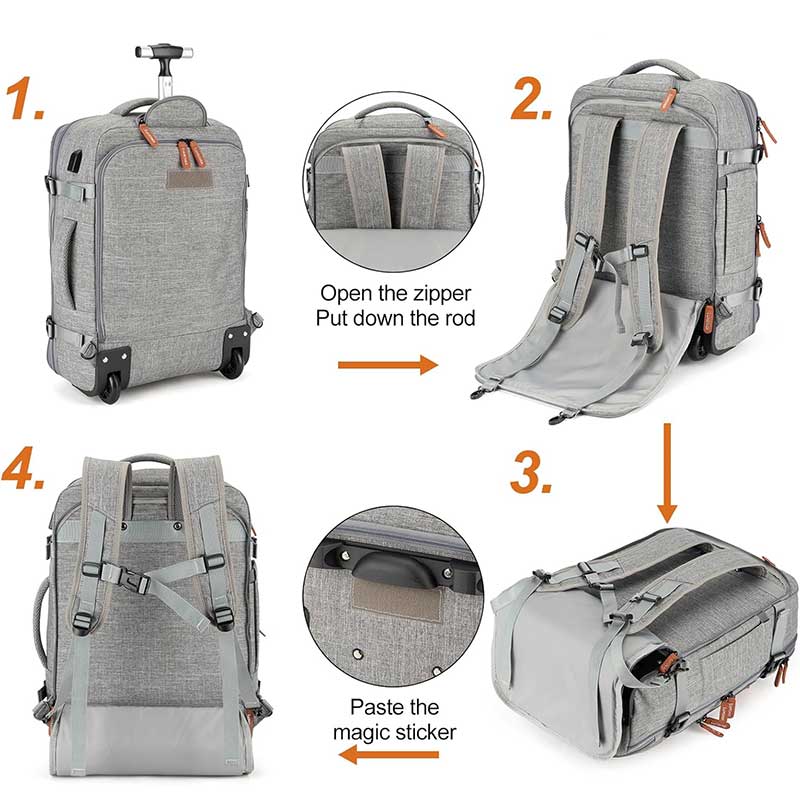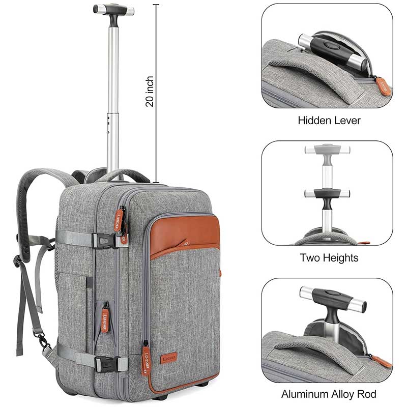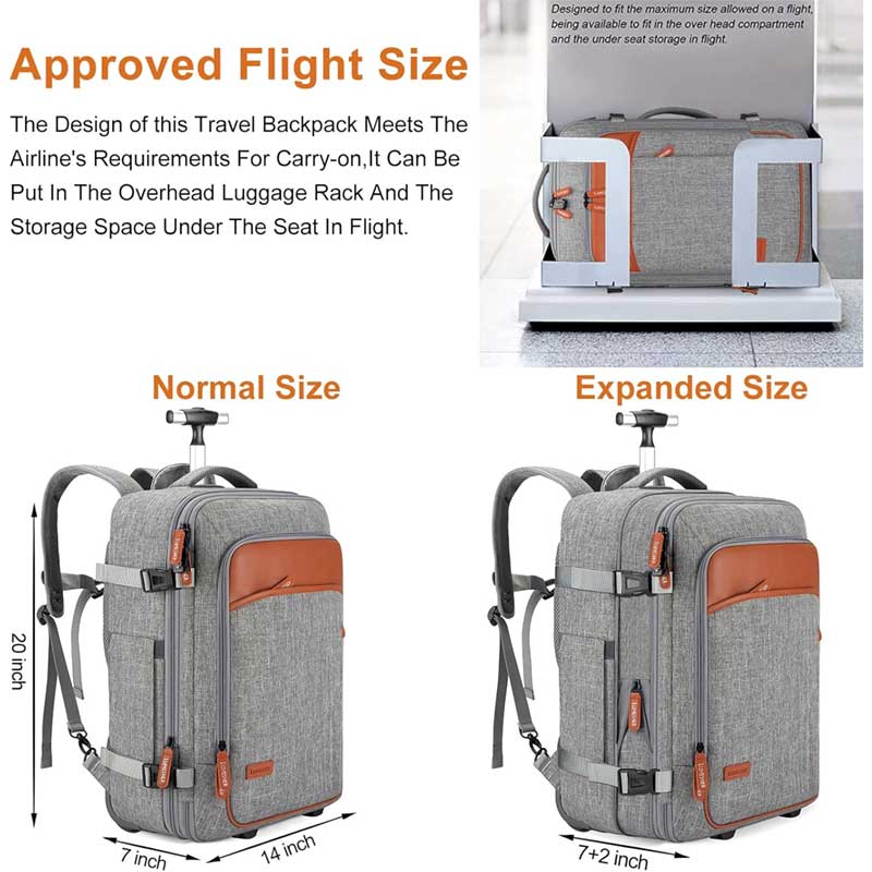 Ba lô du lịch có cần kéo bánh xe cổng sạc USB size to cỡ lớn TM840 chất liệu vải cao cấp chống thấm nước tuyệt vời luôn giữ cho balo sạch và ít bám bụi bẩn, có thêm ngăn đựng laptop 17 inch. Ngăn chính đựng quần áo to có thể chứa 3-5 bộ đồ, đôi giày, tư trang cá nhân dùng cho chuyến đi 3 ngày.
