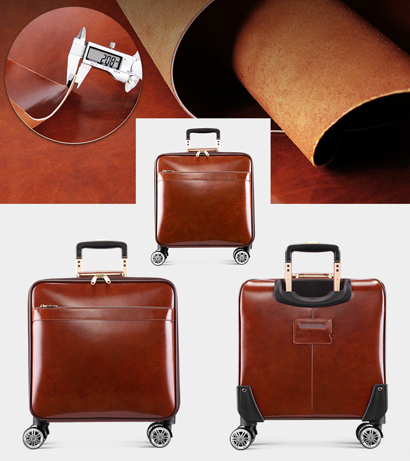 Vali da thật kiểu phi công Pilot TM111 size 16 inch màu nâu đỏ dáng ngang chiều cao chưa tính bánh xe là 410mm. Ngoại hình vuông nhỏ sử dụng như vali xách tay 7kg, đựng được hai bộ quần áo, Ipad, ĐTDĐ và các đồ linh tinh khác cho chuyến đi hai ngày.