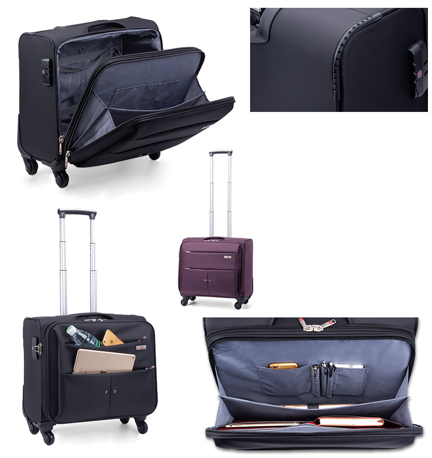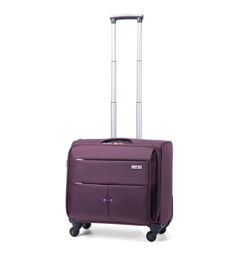 Vali kéo ngang TM006 size 18 inch xách tay nhỏ màu tím dành cho nữ kiểu dáng đẹp, chất liệu vải dù trơn mịn chống thấm nước. Thiết kế thêm ngăn giữa chuyên dụng để chứa hồ sơ, bút, sổ tay, ĐTDĐ... cùng ngăn laptop 16 inch rất hữu ích khi dùng đi công tác hai ngày.