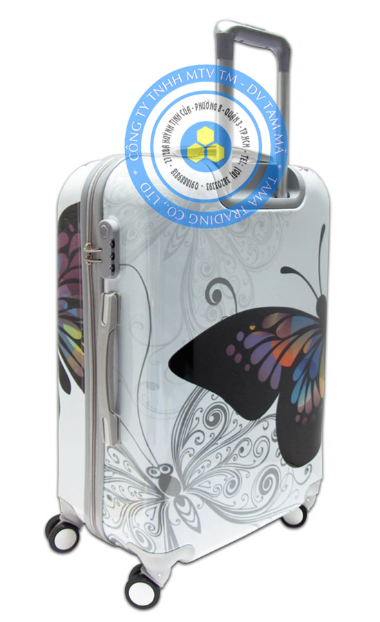 Vali nhựa hình dẻo tốt Butterfly hình bươm bướm trắng hand baggage size nhỏ đựng 7kg hành lý được xách tay lên máy bay. Vali nhựa hình Bướm trắng siêu nhẹ dùng khi đi du lịch ba đến bốn ngày. Vali nhựa dẻo tốt siêu nhẹ chứa được ba bộ quần áo, một đầm, đôi giày dép cộng với các vật dụng nhỏ khác. Vali nhựa dẻo Butterfly Bướm trắng siêu nhẹ loại tám bánh xe cặp đôi thiết kế đẹp phù hợp người dùng là nữ.