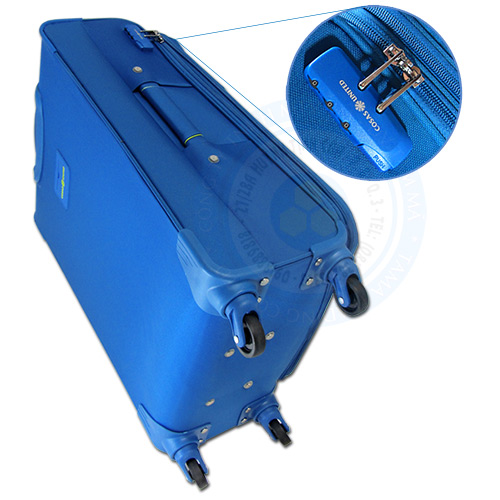 Vali vải cao cấp có trọng lượng nhẹ thương hiệu Cosas United hiện có size nhỏ 20 và size trung 24 Inch. Vali vải cao cấp size trung hành lý 20 Kg kiểu dáng đẹp màu xanh metal sang trọng có bốn bánh xe công nghệ mới My Super Light Wheel xoay 360 độ siêu êm, siêu nhẹ tạo cảm giác nhẹ nhàng khi sử dụng.