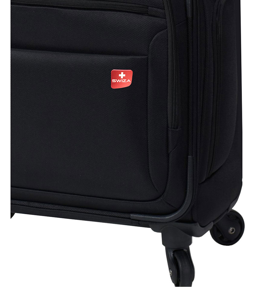 Vali vải cao cấp chống nước Swiza Eventual Size 25 đen TM415 tay kéo chắc chắn, có bốn bánh xoay, sử dụng khóa TSA, hai tay xách, chất vải dệt đan chéo có tráng phủ dùng bền. Kích cỡ size 25 Inch thuộc nhóm vali đựng quần áo du lịch (Size 23 24 25 26) sức chứa trung bình 20Kg, phù hợp một người dùng đi công tác, du lịch năm ngày đến một tuần.